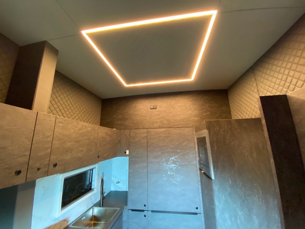 Our role was to deliver a full upholstery service: we crafted the seat cushions, ceiling, and all soft panelling – as seen in the accompanying project photos. We used soft Italian leather for the living area finish, and in the sleeping quarters, we upholstered the wall panels in a combination of velour fabric and leather, enhanced with decorative cross-stitching.
